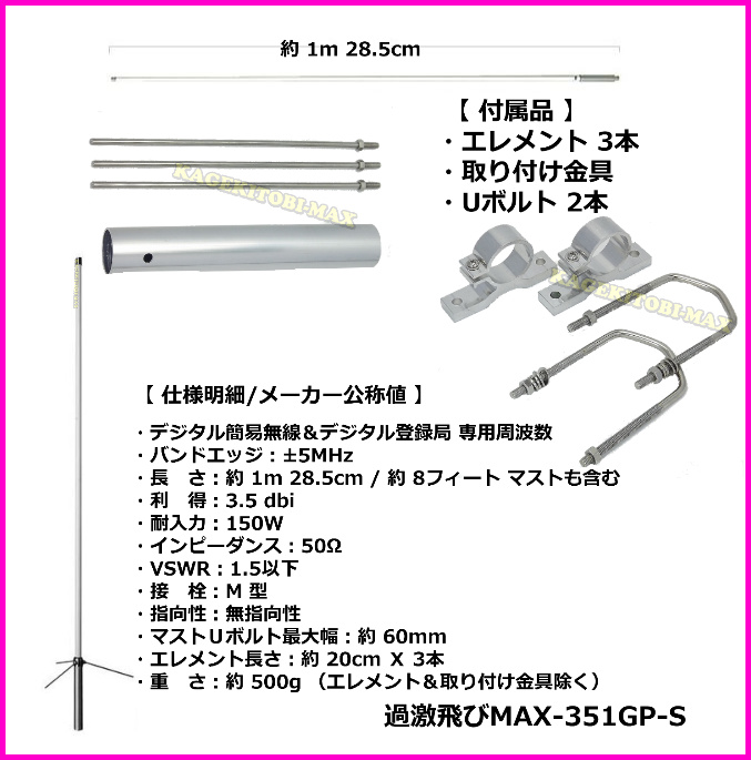 351MHz デジタル簡易 無線専用設計・基地局用 高性能・遠距離通信アンテナ S 新品 即納